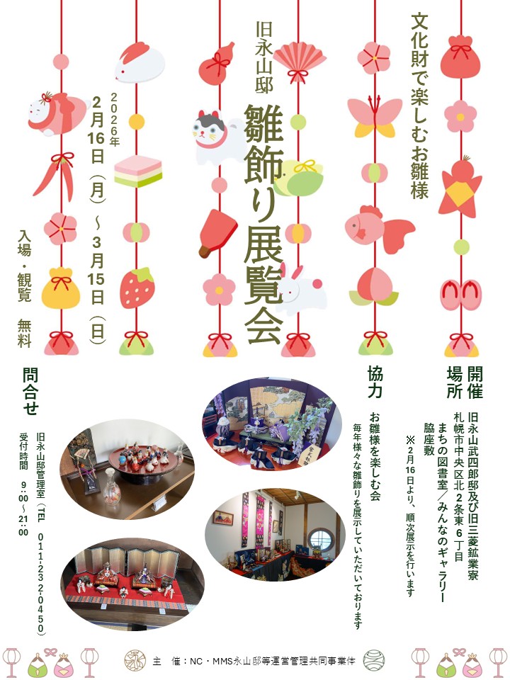 お問合せ:旧永山邸管理室 (☎Tel 011-232-0450)